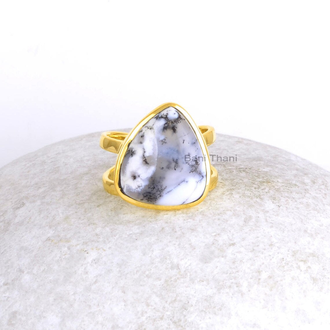 Dendritic Agate Gemstone Ring - Solid 925 Sterling Silver Ring - Gold Plated Ring - Daily Use Boho Ring - Authentic Gift Ring - Gift for Her