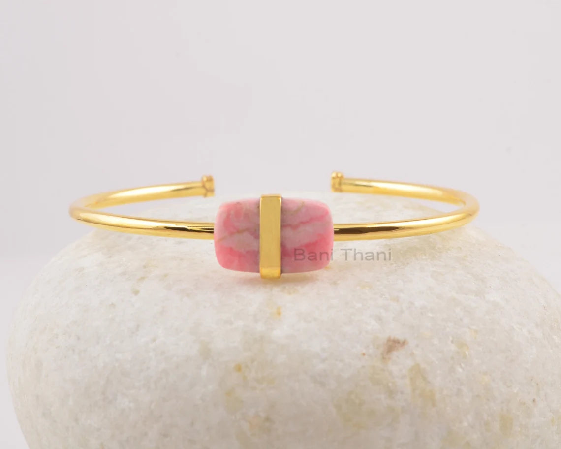 Rhodochrosite Bangle, 925 Sterling Silver, Handmade Bracelet, Rectangle Gemstone Bracelet, Cuff Bangle, Gift for Besties, Jewelry for Sister