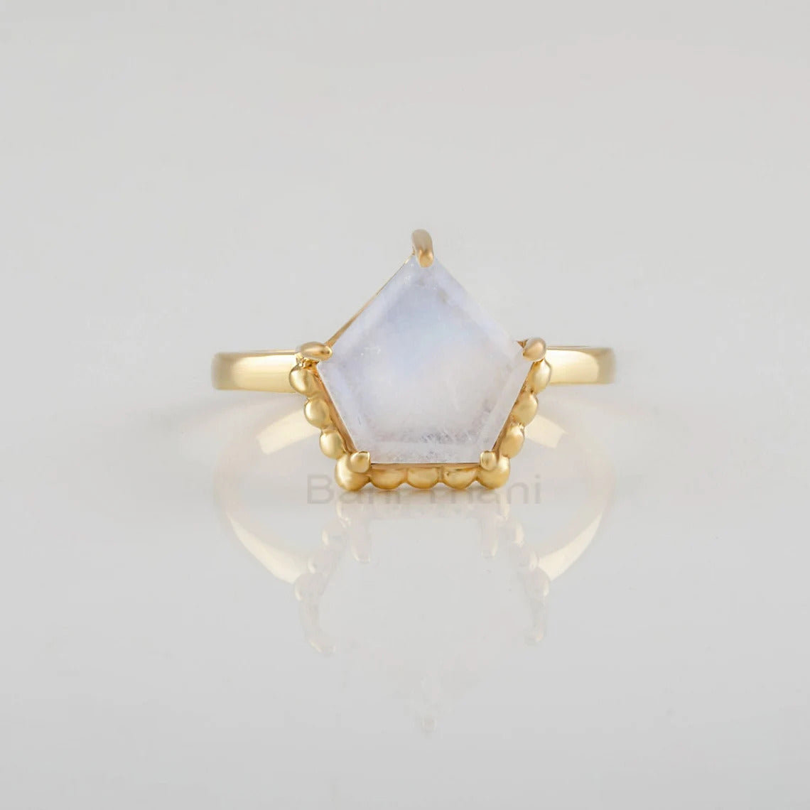 Diamond Shape Moonstone Silver Ring, Modern Gold Plated Boho Ring For Women, 925 Sterling Silver Dainty Ring, Handmade Delicate Ring