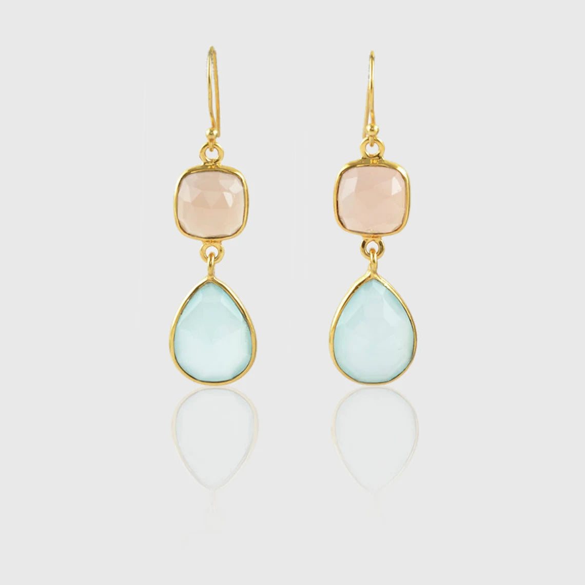 Stone Detail: Pink Chalcedony 10mm Cushion, Aqua Chalcedony 10x14mm Pear Gemstone.