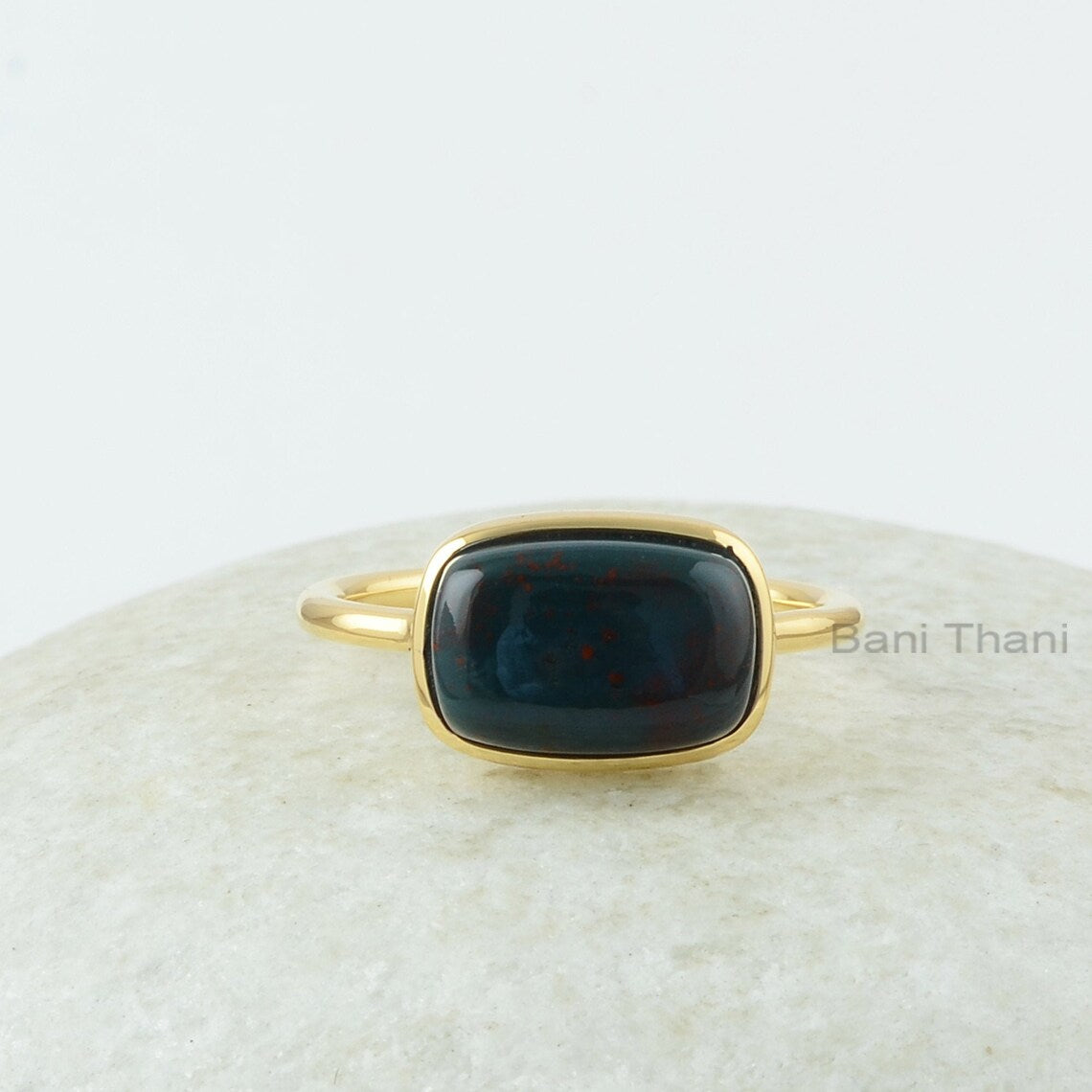 Elegant Bloodstone Ring, Bloodstone 8x12mm Cushion Gemstone Ring, 18k Gold Plated Ring, 925 Sterling Silver Bloodstone Ring, Christmas Gift