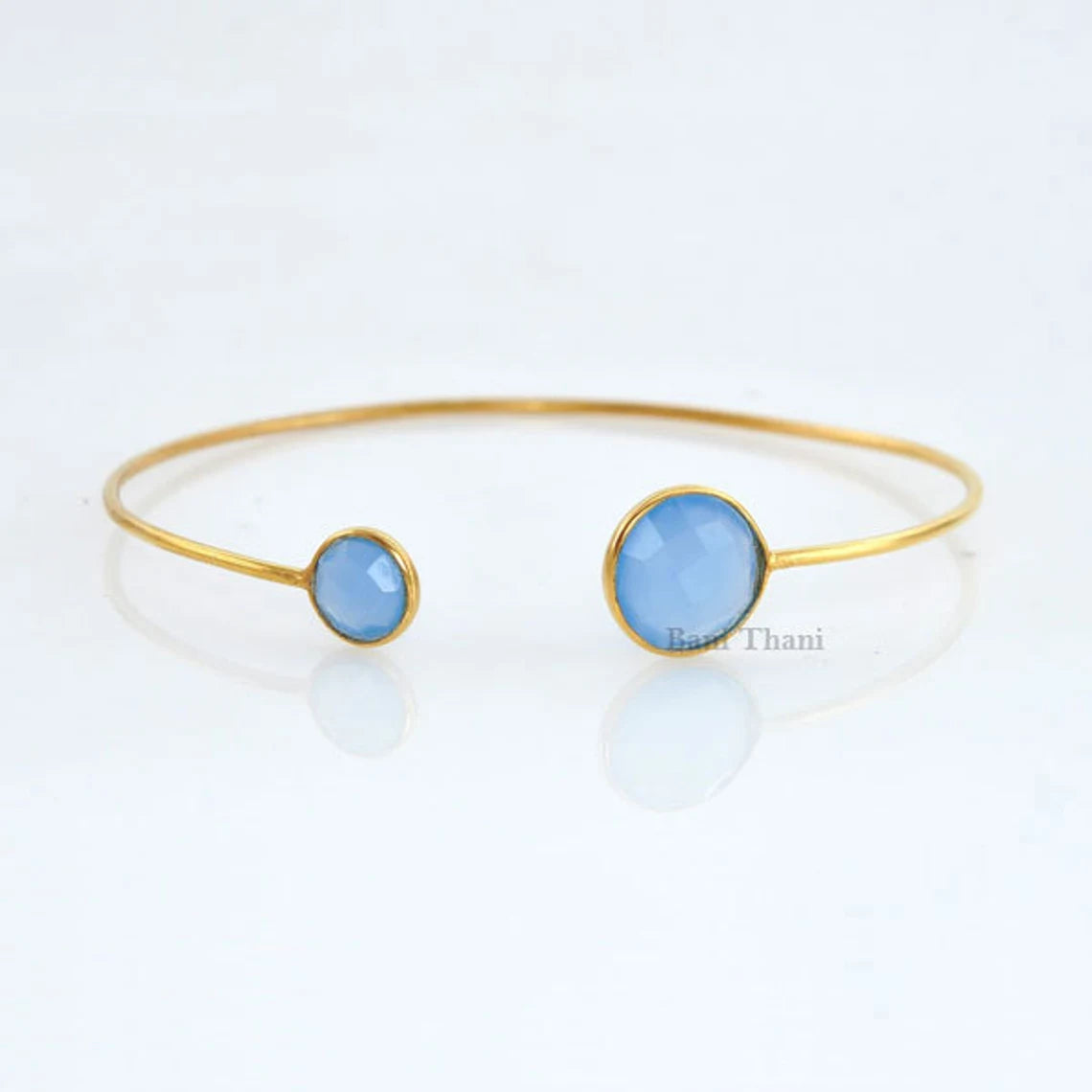 Elegant Blue Chalcedony Round Gemstone Cuff Bracelet-925 Sterling Silver Gold Plated Bangle-Gift for Her-Halloween Gift-Minimalist Jewelry