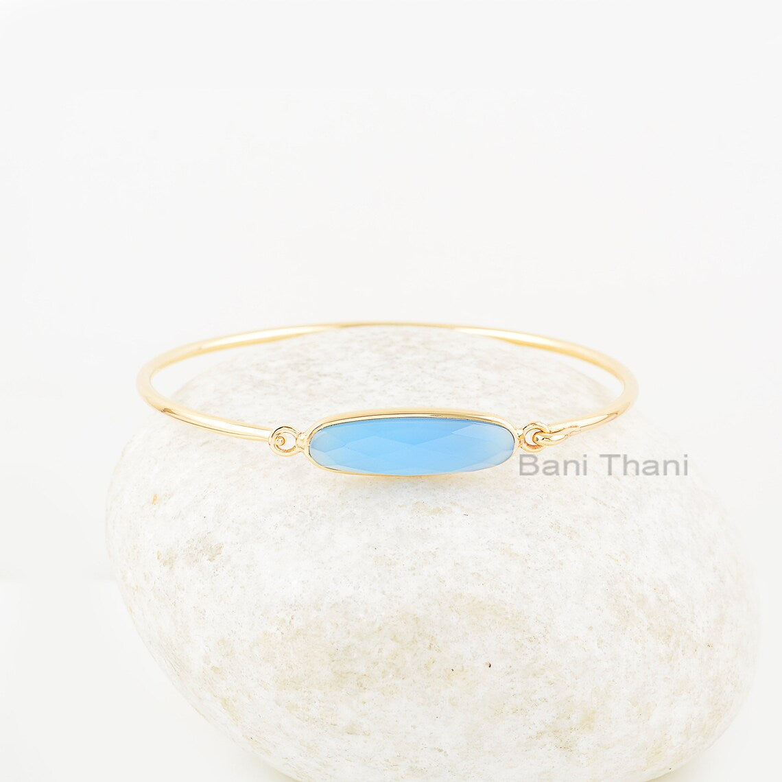 Blue Chalcedony Bracelet - Solid Silver - Gold Plated Bracelet - 7x25mm Oval - Bestseller Jewelry - Gift For Healing - Jewelry For Loved One