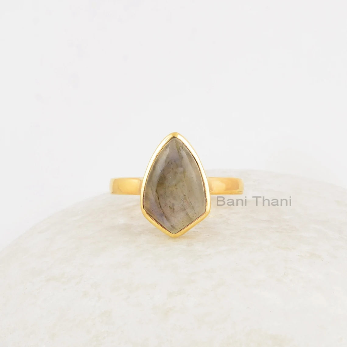 Elegant Labradorite Ring, Labradorite 9x14mm Kite Shape Gemstone Bezel Set Ring, 18k Gold Plated Silver Ring, Christmas Day Gift For Her