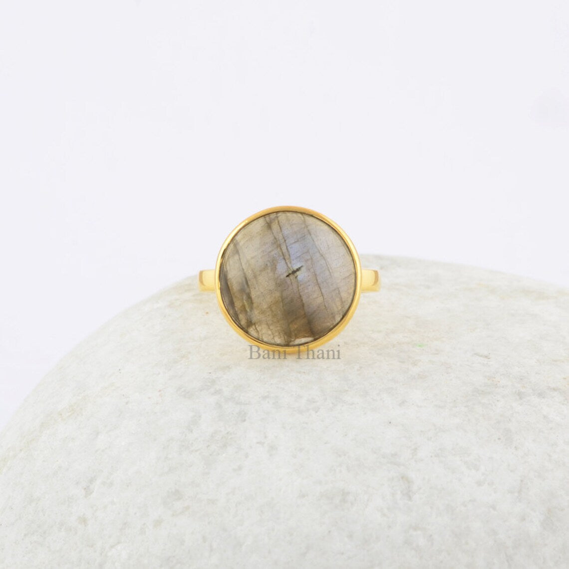 Elegant Labradorite Round Gemstone Ring - 925 Sterling Silver 18k Gold Plated Ring - Engagement Ring for Bride - Gift Her - Statement Ring