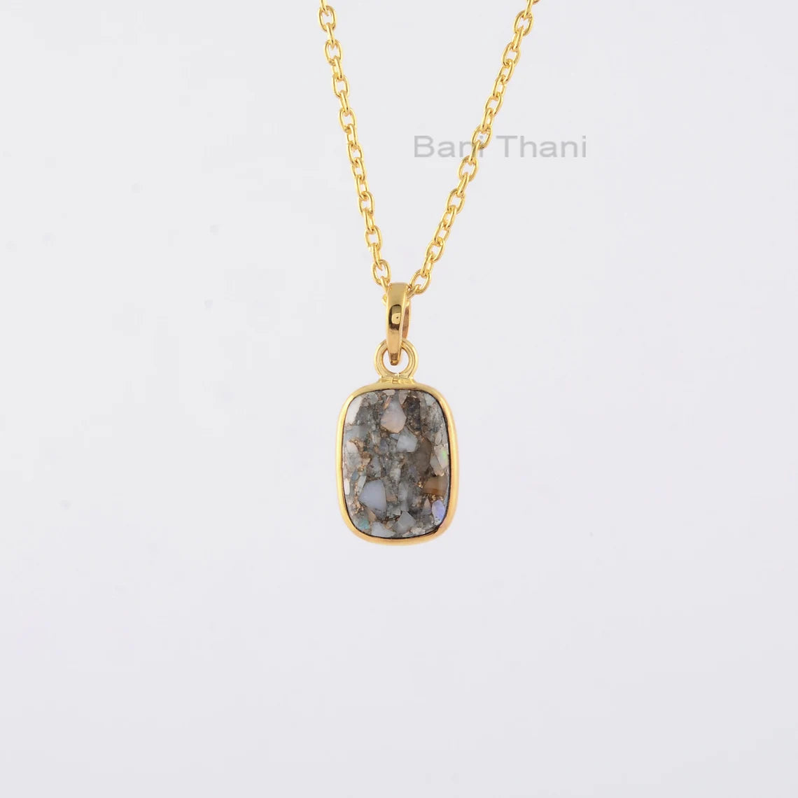 Elegant Opal Necklace, Ethiopian Opal Copper Cushion Gemstone Silver Necklace, Gold Plated Bezel Necklace Jewelry, Valentine's Gift Necklace