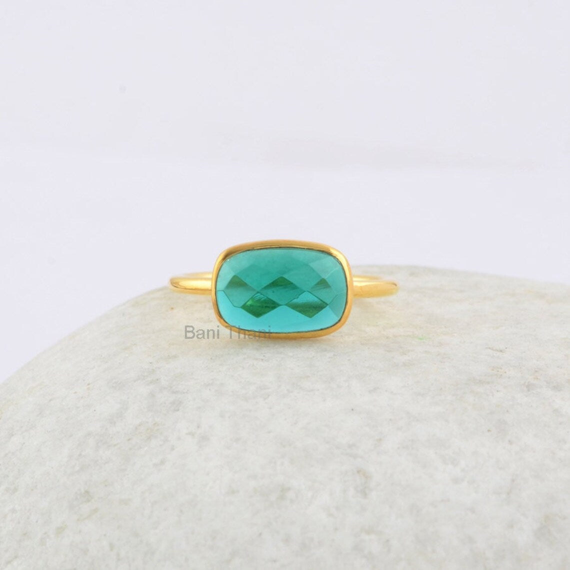 Elegant Teal Quartz Cushion 7x11mm Gemstone Bezel Ring-18k Gold Plated Quartz Sterling Silver Jewelry Ring-Bridesmaid Gift-Astrological Ring