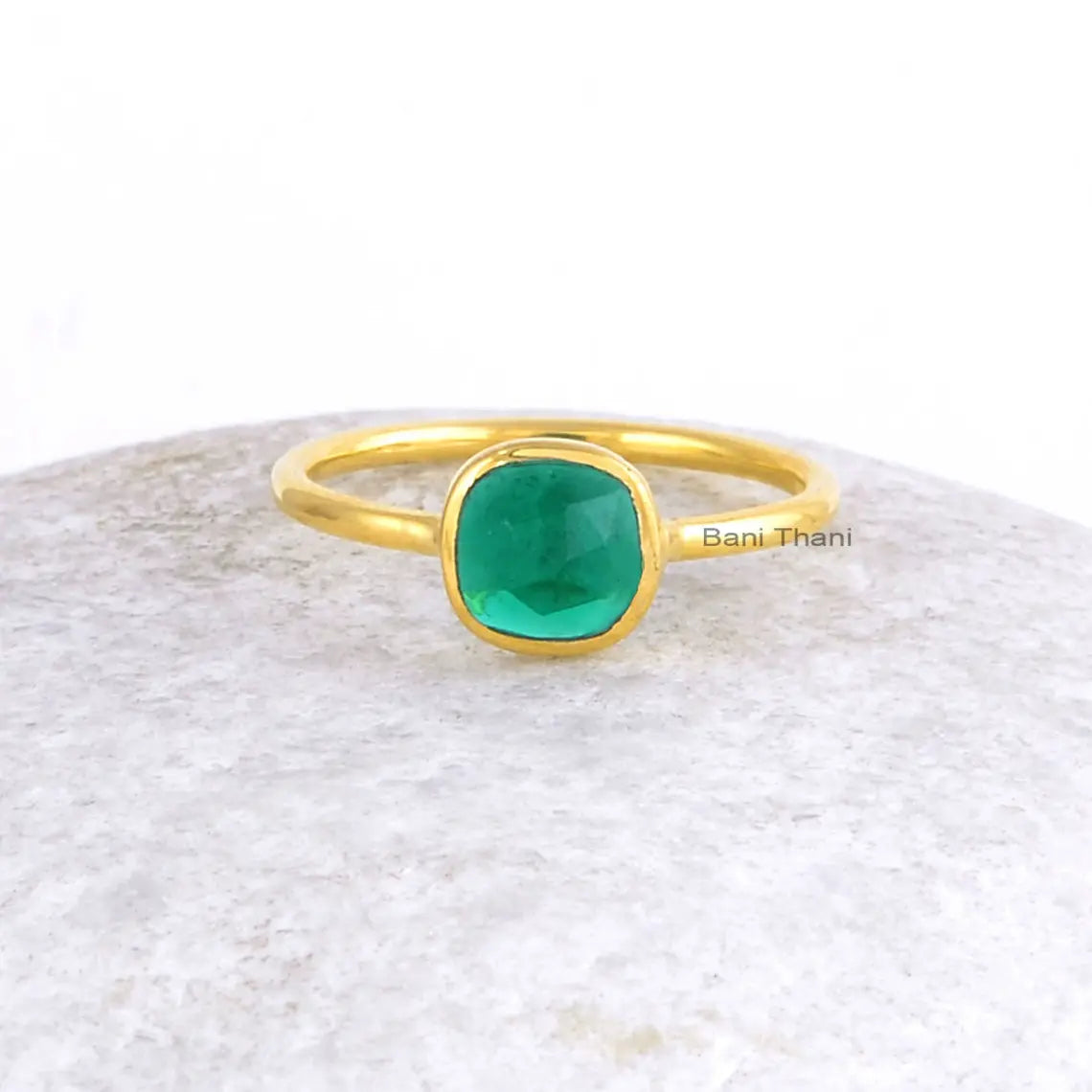 Emerald Quartz Ring - 925 Sterling Silver - Gemstone Ring - Gold Plated Jewelry - Party Jewelry - Jewelry For Teens - Gift For Mothers Day