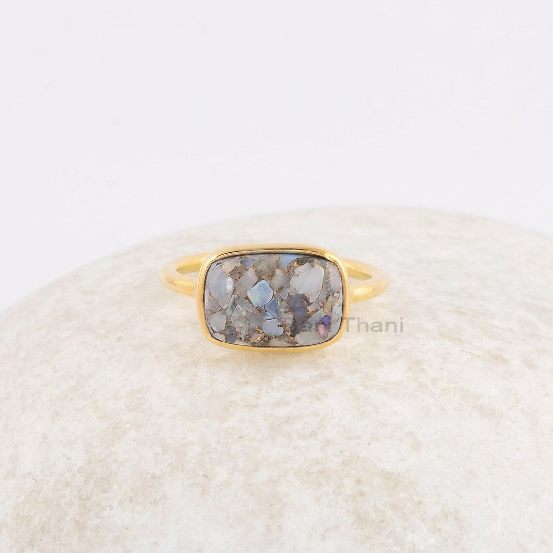 Ethiopian Opal Copper Gemstone Ring, 8x12mm Cushion Sterling Silver Ring, Gold Plated Bezel Ring, Jewelry for Women, Jewelry for Birdesmaid