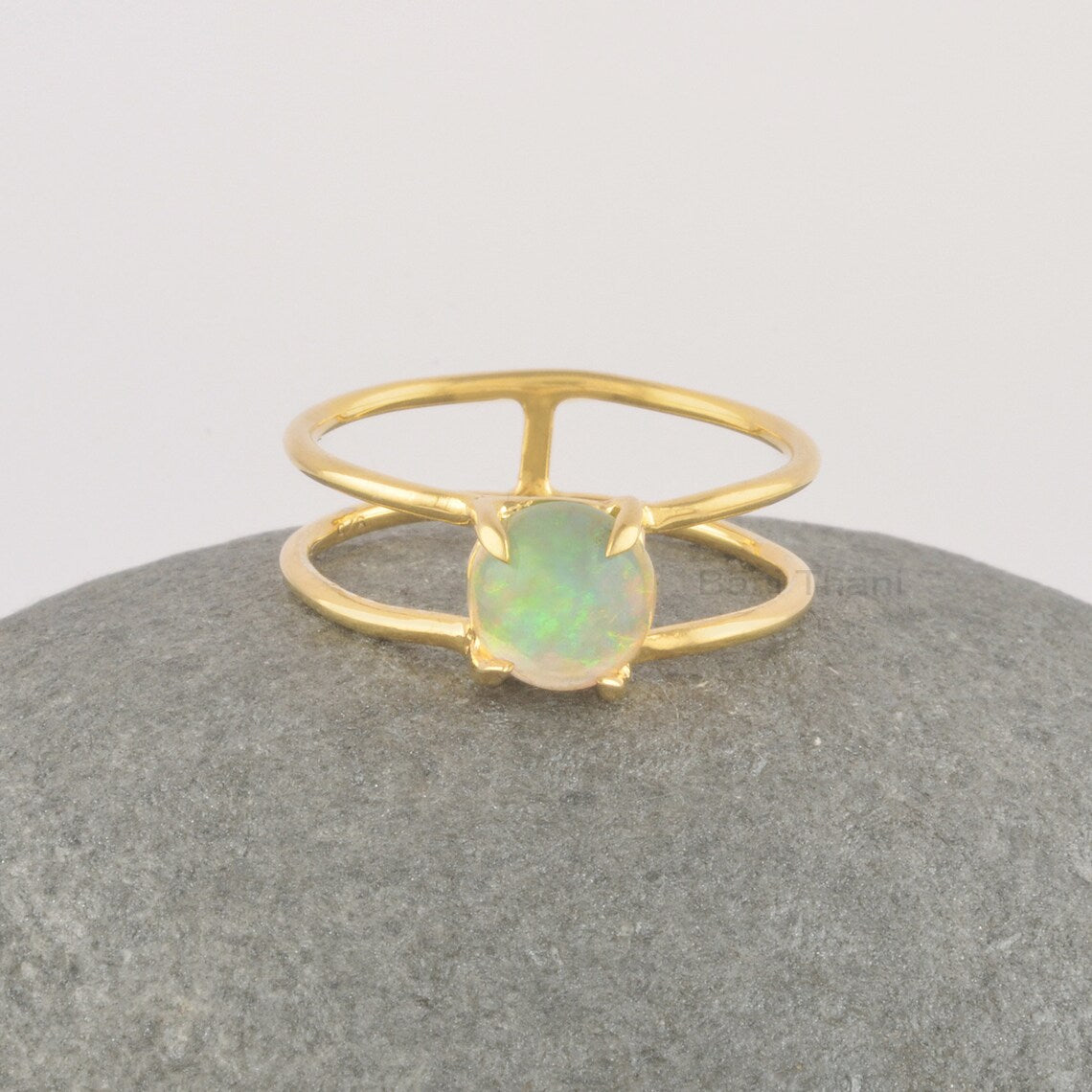 Ethiopian Opal Ring, Natural Gemstone 7mm Round October Birthstone Ring, 18k Gold Plated 925 Silver Ring, Dainty Minimalist Ring For Women