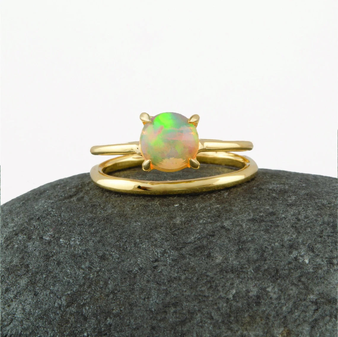 Ethiopian Opal Ring - Raw Gemstone Ring - Engagement Ring - Bridesmaid Ring - 925 Silver Minimalist Prong Ring - Fine Jewelry For Women