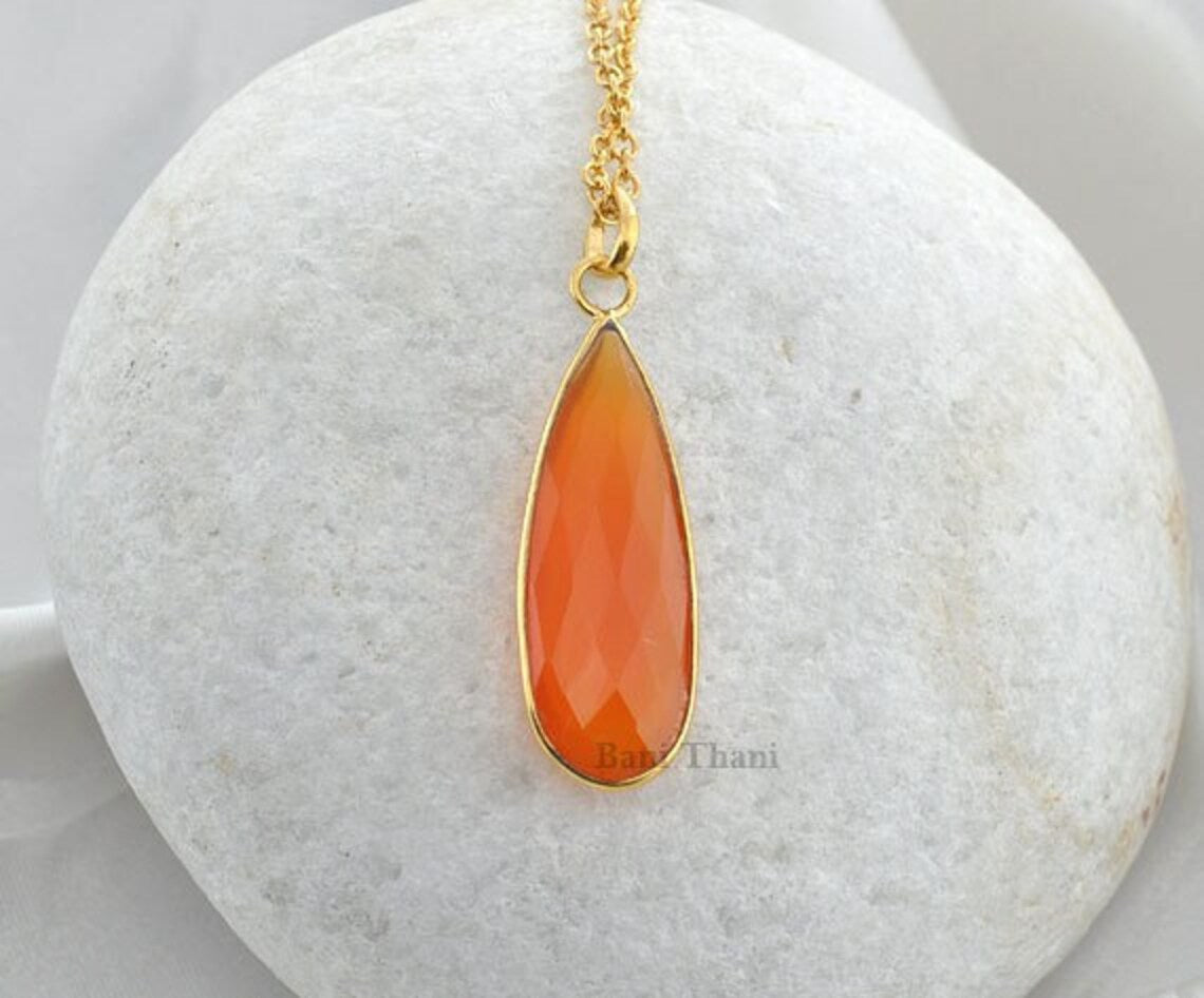 Fanta Chalcedony 11x32mm Long Pear Gemstone Necklace, Gold Plated 925 Sterling Silver Necklace, Wedding Gift Necklace, Delicate Necklace