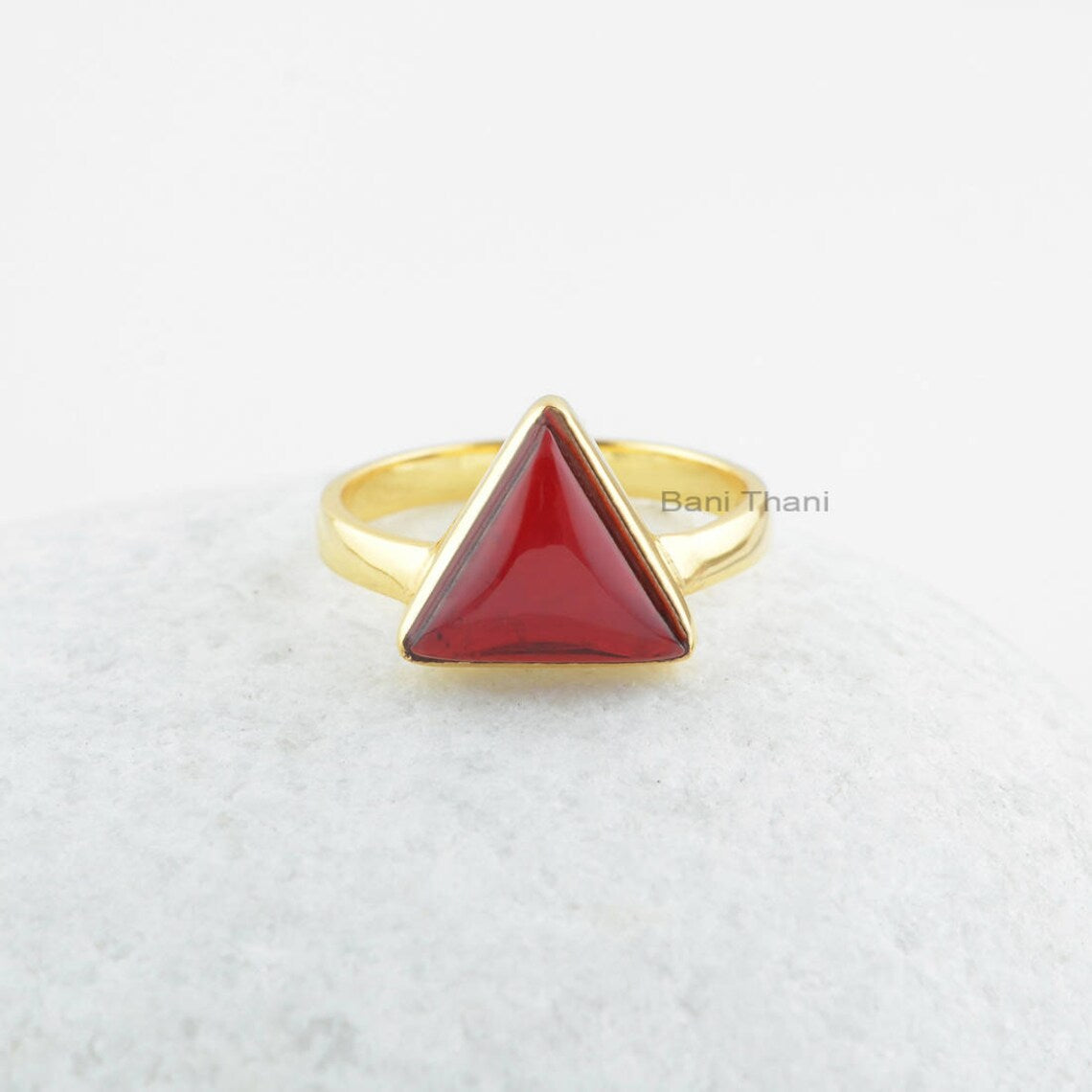 Garnet Quartz Silver Ring - 925 Sterling Silver Ring - Triangle Gemstone Gold Plated Ring - Statement Ring - Gift for Women - Gift for Her