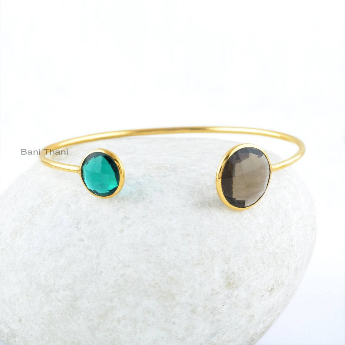 Gemstone Bangle-14mm Smoky Quartz Round Bangle-Teal Quartz Round 10mm Bangle-Handmade Bracelet-Smoky Quartz Bracelet-Gift Jewelry