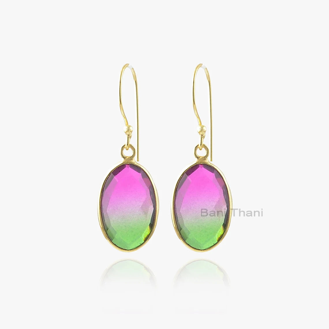 Gemstone Earrings-Bio Tourmaline Quartz 12x17mm Oval Gemstone Dangle Earrings-Sterling Silver Earrings-18k Gold Plated Earrings-Jewelry Gift