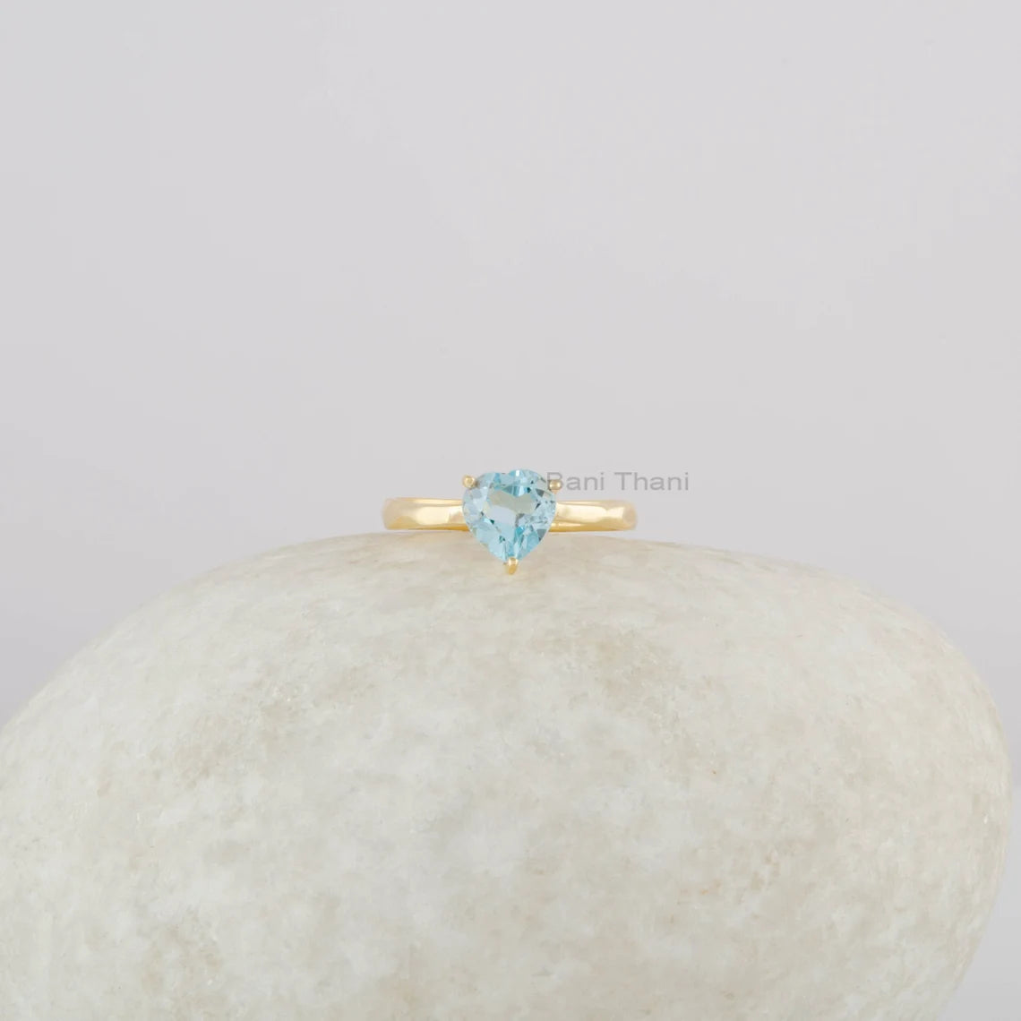 Gift for Valentine - Blue Topaz Ring - 925 Silver Gold Plated Prong Ring - Gemstone Ring for Wedding Gift - Gift for Her - Birthstone Ring