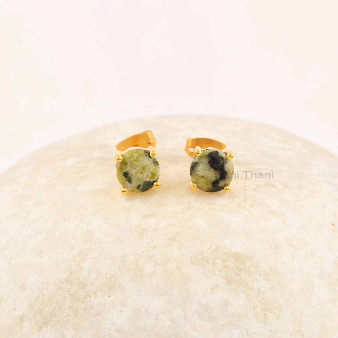 Gogunjula Jasper Studs Earrings, Minimalist Round Cut Gemstone Silver Earrings, 925 Sterling Silver 18k Gold Plated Stud For Christmas Gifts