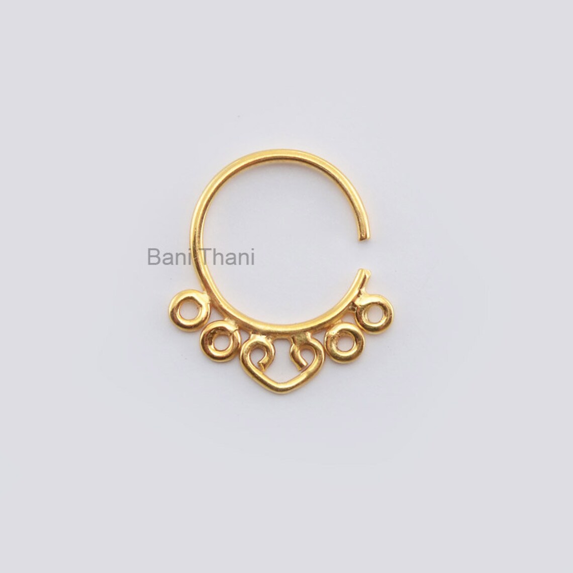 Gold Plated Septum Ring For Pierced Nose 925 Sterling silver Nose Jewelry - Indian Nose Ring, Tribal Belly Dance, Body Jewelry- Septum Ring