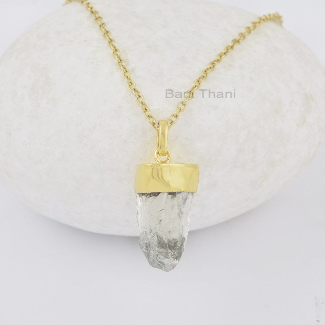 Green Amethyst Rough Gemstone Necklace, 925 Sterling Silver Micron Gold Plated Handmade Raw Necklace, Rough Christmas Gift Jewelry Necklace