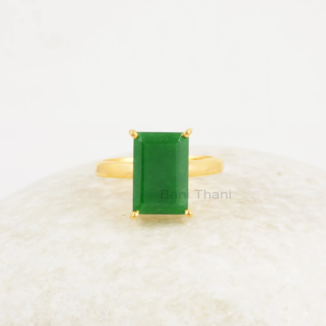 Green Aventurine Silver Ring - 8x12mm Rectangle Gemstone Ring - 925 Solid Silver Ring - Gold Plated Ring - Ring for Womens - Promise Ring