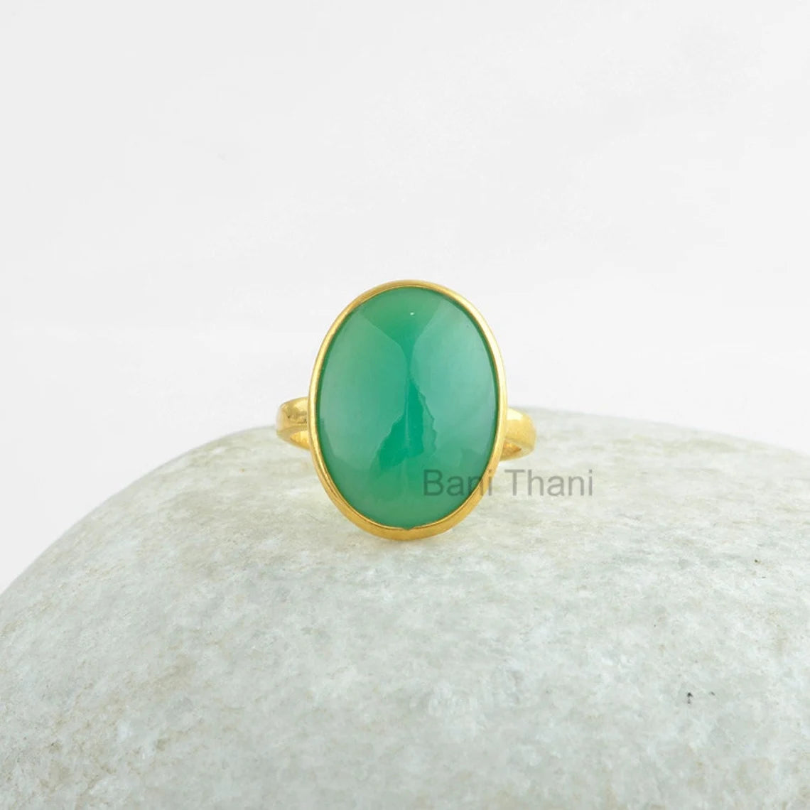 Green Chrysoprase Chalcedony Gemstone Ring - Gold Plated 925 Sterling Silver Ring - Engagement Gift Ring - Boho Ring - Jewelry for Spouse