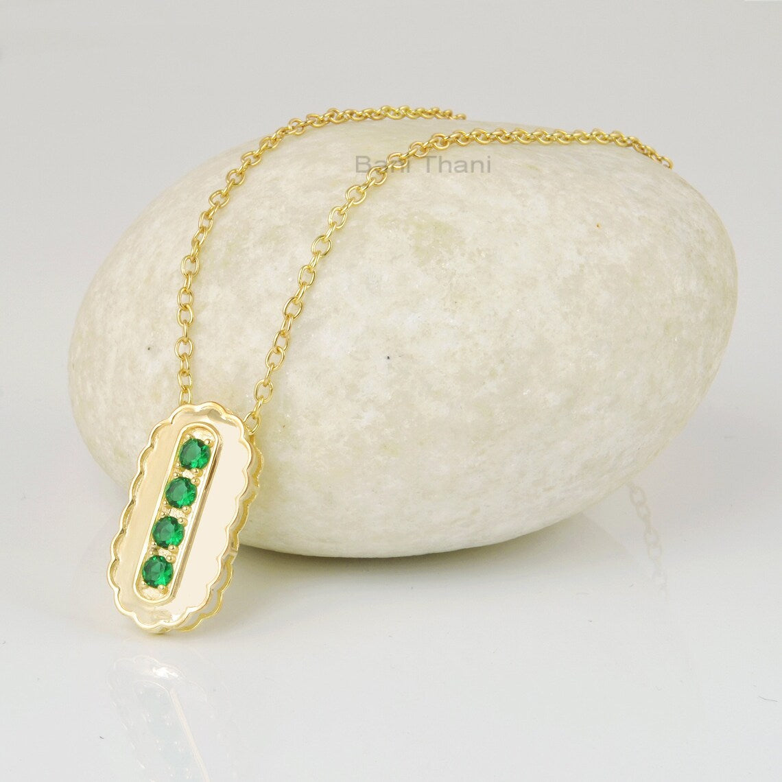 Green Emerald Quartz Necklace, 925 Silver Gold Plated Necklace, Anniversary Gift, Gemstone Necklace, Jewelry For Mom, Pendant Chain Necklace