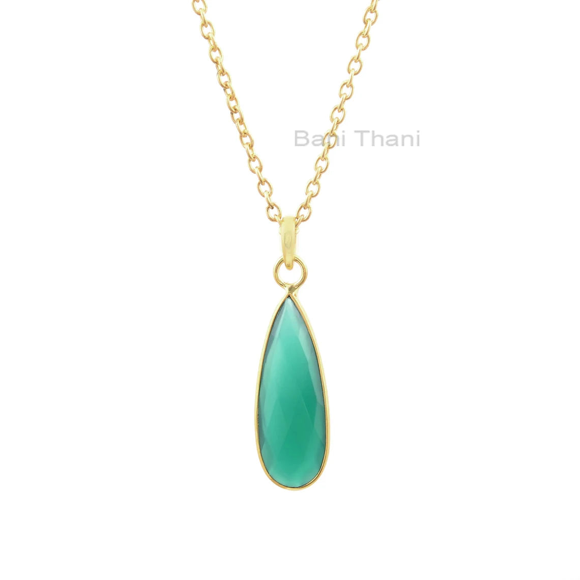 Green Onyx 8x25mm Gemstone Necklace, 18k Gold Plated Sterling Silver Necklace, Christmas Gift Necklace, Delicate Necklace, Bezel Necklace