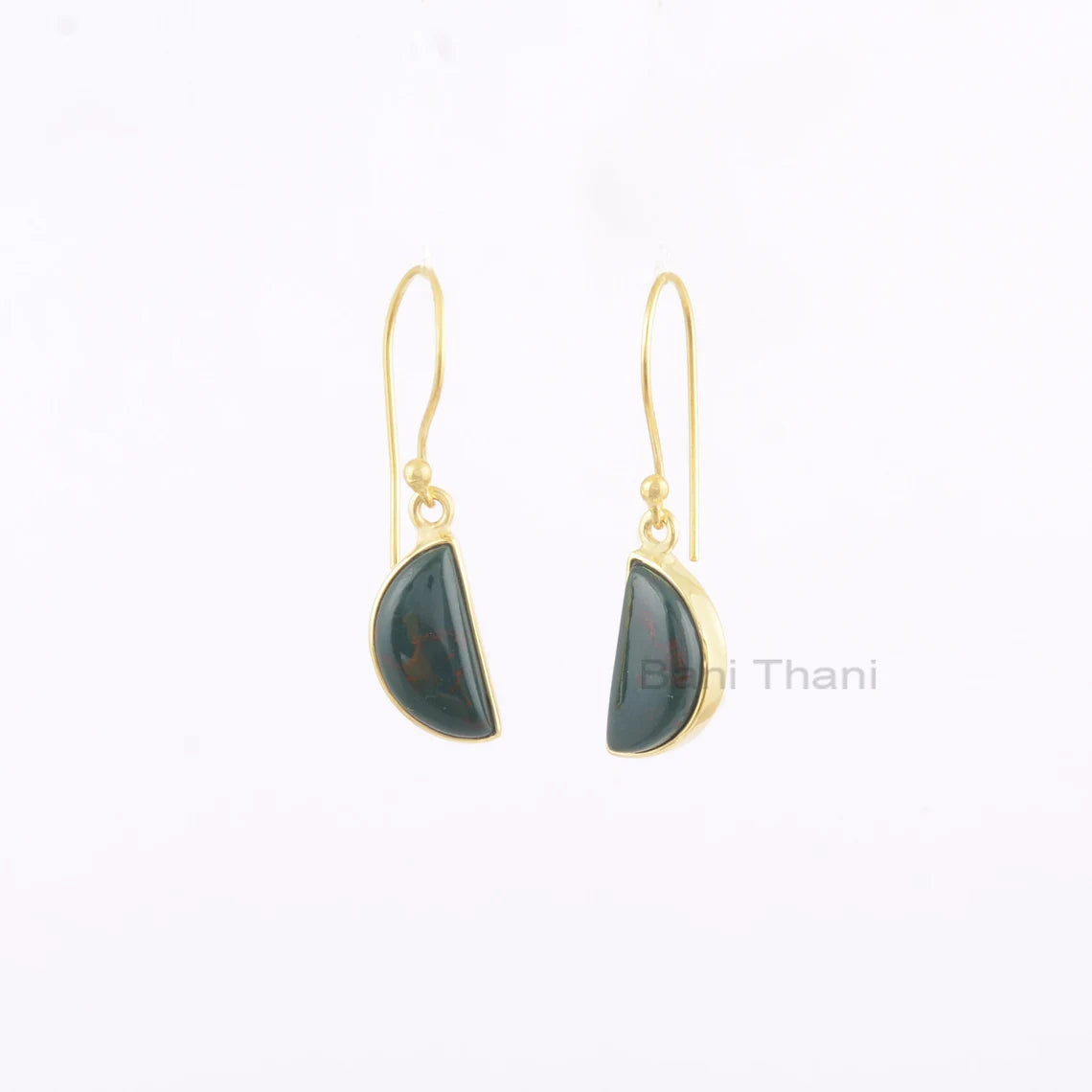 Handmade Halfmoon Bloodstone 7x14mm Gemstone Drop Earrings, 925 Sterling Silver Drop Earrings, 18k Gold Plated Earring, Drop Dangle Earrings