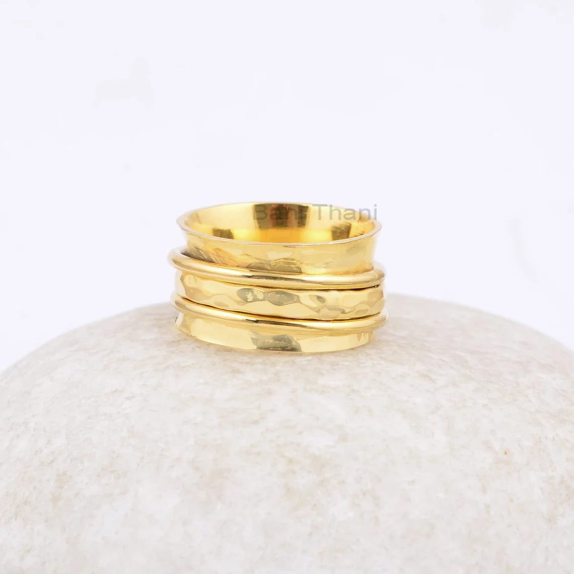 Hand Hammered Gold Plated Spinner Band - Thumb Band - Sterling Silver - Spinner Ring - Meditation Ring - Gift For Lady - Boho Jewelry