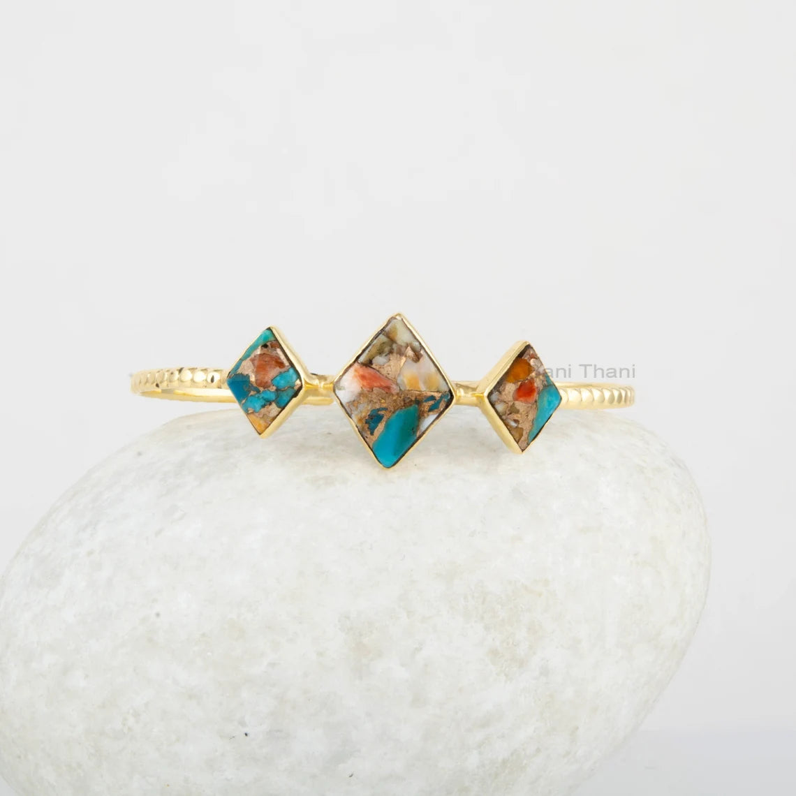 Delicate Cuff Bracelet - Oyster Turquoise Bangle - 925 Sterling Silver Bracelet - Diamond Shape Gemstone - 18k Gold Plated - Handmade Bangle