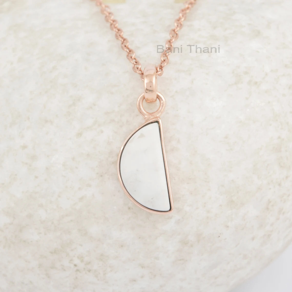 Howlite Necklace - Gold Plated Pendant Necklace - Solid Silver - 7x14mm Halfmoon - Personalized Jewelry - Jewelry For Summer - Gift For Wife