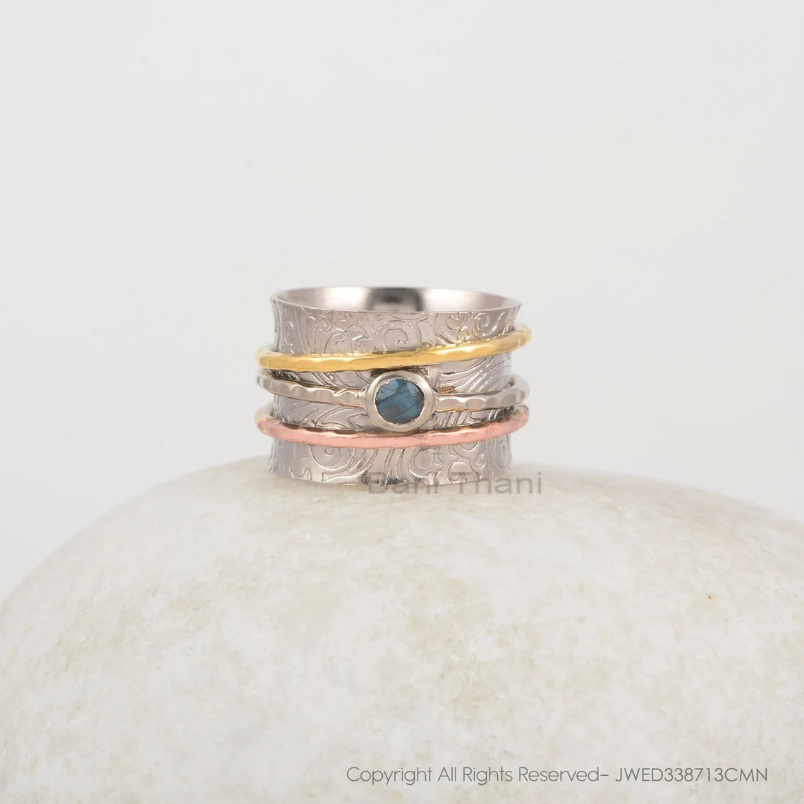 Labradorite Spin Band Ring - Handmade Boho Ring - 925 Silver - Anxiety Ring - Matching Jewelry - Jewelry For Bride - Gift For Young Girls