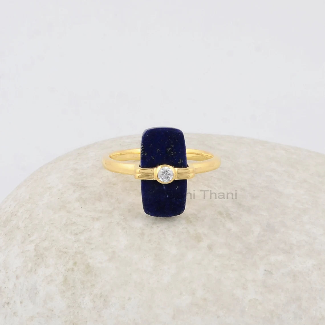 Lapis Lazuli 8x15mm Gemstone Ring - Solid Silver Handmade Ring - 18k Gold Plated Ring - Gift for Womens - Rings for Ladies - CZ Set Jewelry