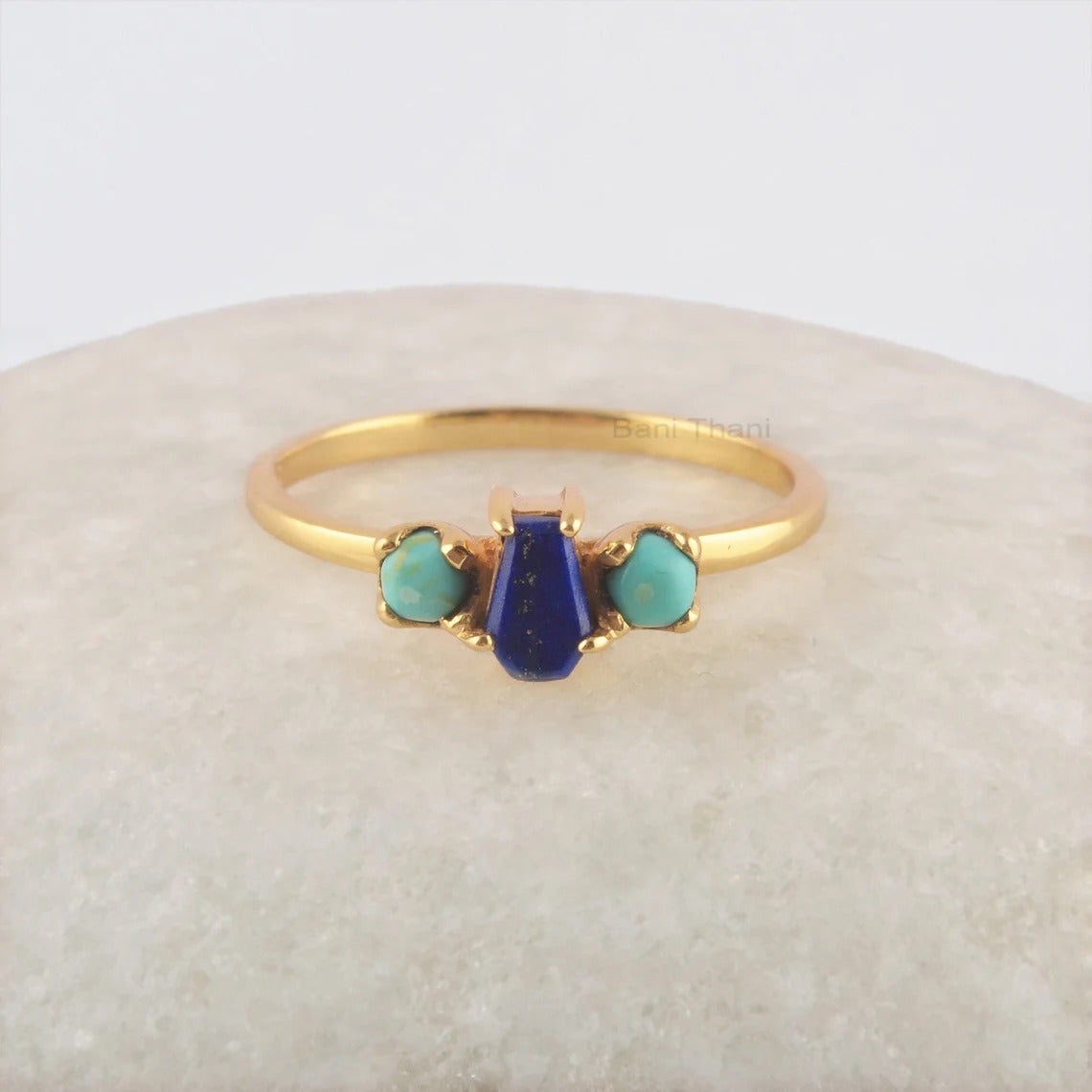 Lapis Lazuli Coffin Ring - Coffin Ring - Sterling Silver - Four Prong - 18k Gold Plated - Gold Coffin Ring - Elegant Jewelry Gift for Mom