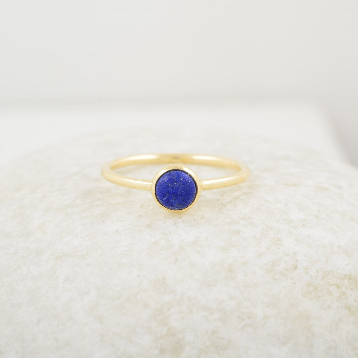 Lapis Lazuli Ring - 925 Sterling Silver - 5mm Gemstone Ring - Gold Plated Jewelry - Elegant Jewelry - Jewelry For Healing - Gift For Family