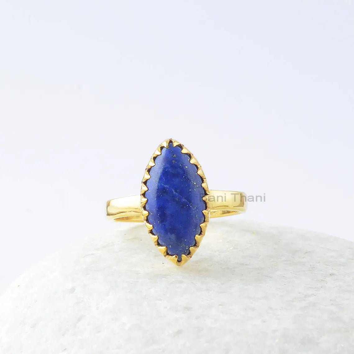 Lapis Silver Ring, Lapis Lazuli 8x16mm Marquise 18k Gold Plated Gemstone Ring, 925 Sterling Silver Ring, Zig Zag Bezel Ring, Gift For Wife