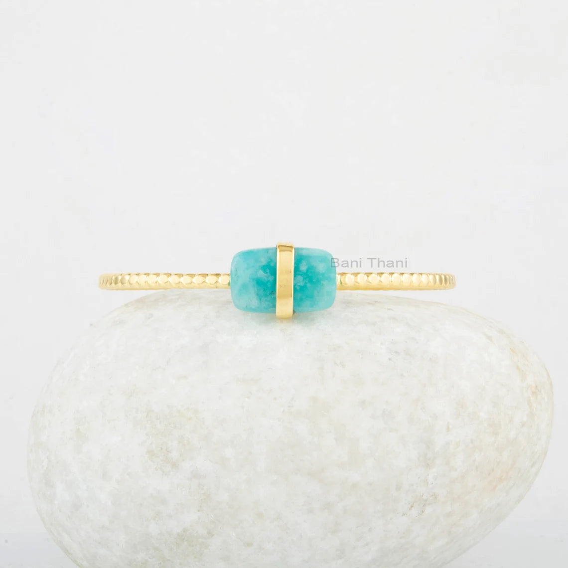 Amazonite Cuff Bracelet - 925 Silver Bracelet - Adjustable Bangle - 10x16mm Cushion Gemstone - Gold Plated - Wedding Gift- Delicate Bracelet
