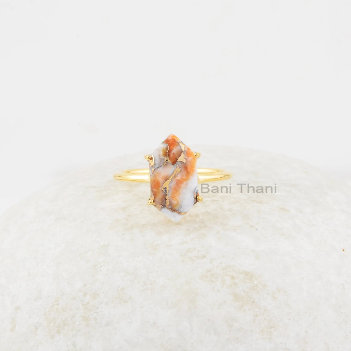 Mohave Copper Oyster Hexagon Ring - Gold Plated Prong Ring - 8x15mm Gemstone Ring - Solid Silver Ring - Jewelry for Women - Gift for Girls