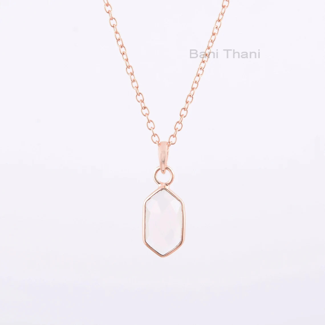 Morganite Necklace - 925 Silver - Rose Gold Plated Necklace - 8x15mm Hexagon - Jewelry Manufacturer - Gift For Her - Jewelry For Healing