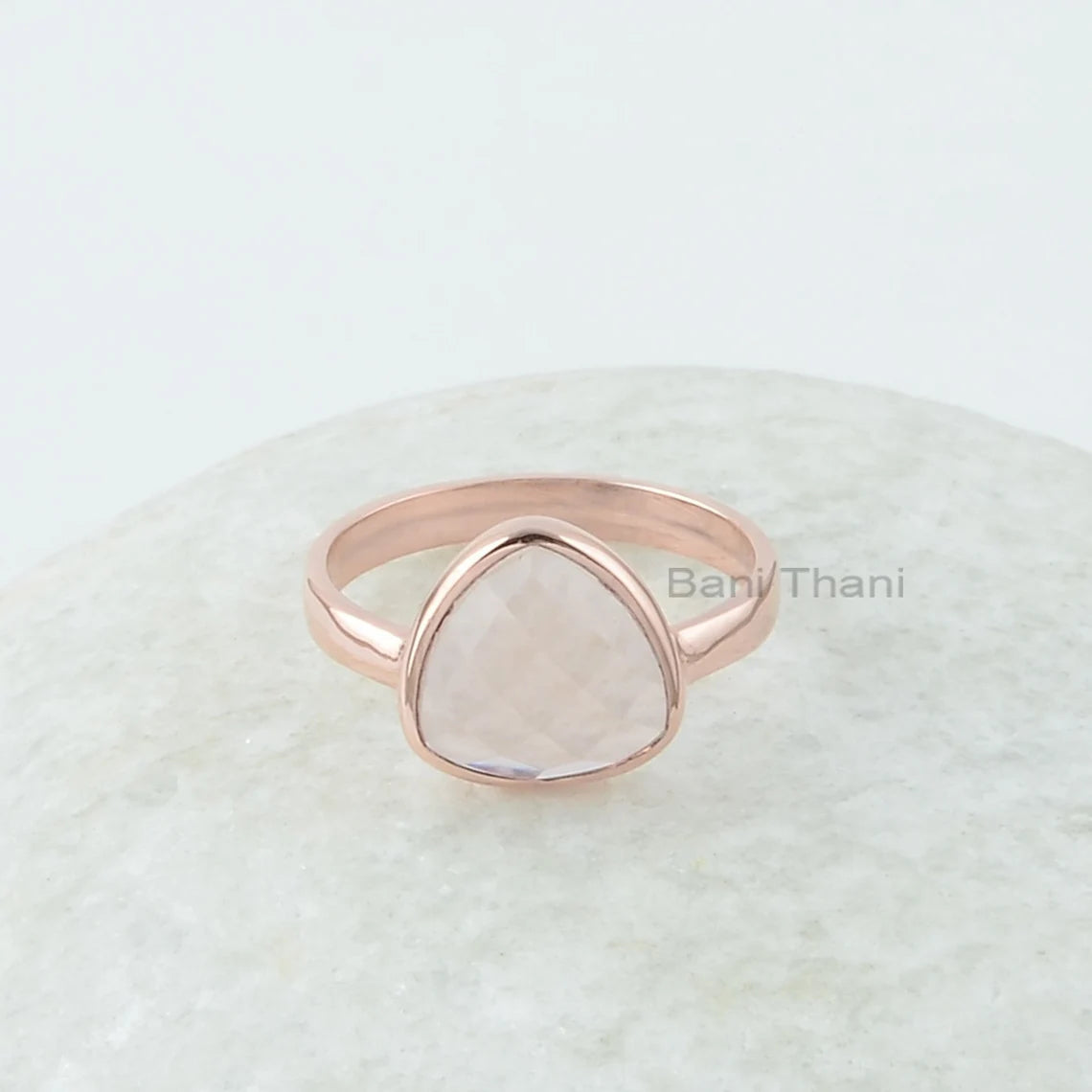 Morganite Quartz Gemstone Silver Ring - Solid 925 Silver Ring for Women - Trillion Rose Gold Plated Ring - Statement Ring - Christmas Gift