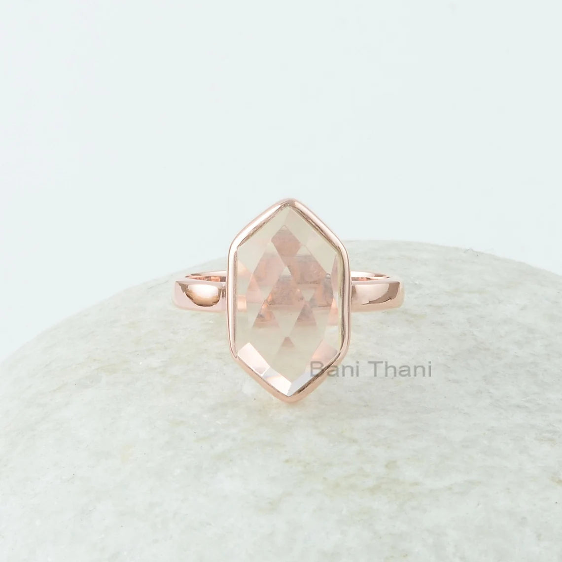 Morganite Ring - Pure Silver - Handcrafted Ring - Rose Gold Plated - Faceted Hexagon - Healing Jewelry - Gift For Lady - Jewelry For Bride