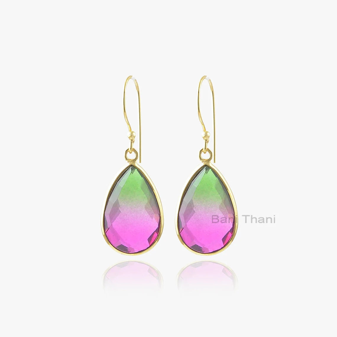 Tourmaline Earrings-Bio Tourmaline Quartz 12x17mm Pear Silver Earrings-Gemstone Earrings-Dangle Earrings-Gold Plated Earrings-Gift For Her