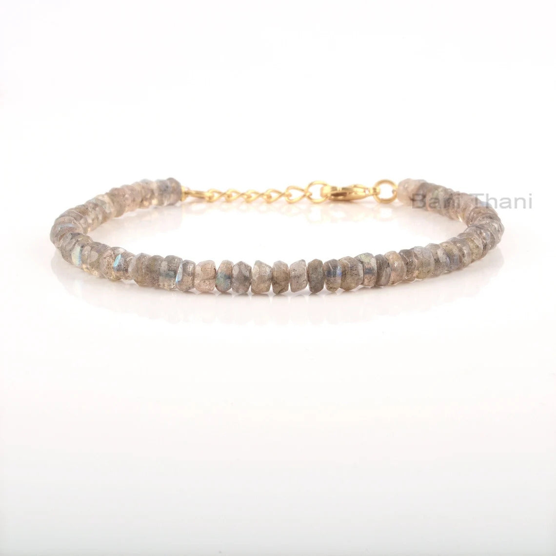 Natural 4mm Labradorite Gemstone Healing Bracelet, Meditation Grounding Strength Bracelet, Round Beads Beaded Handmade Bracelet For Women