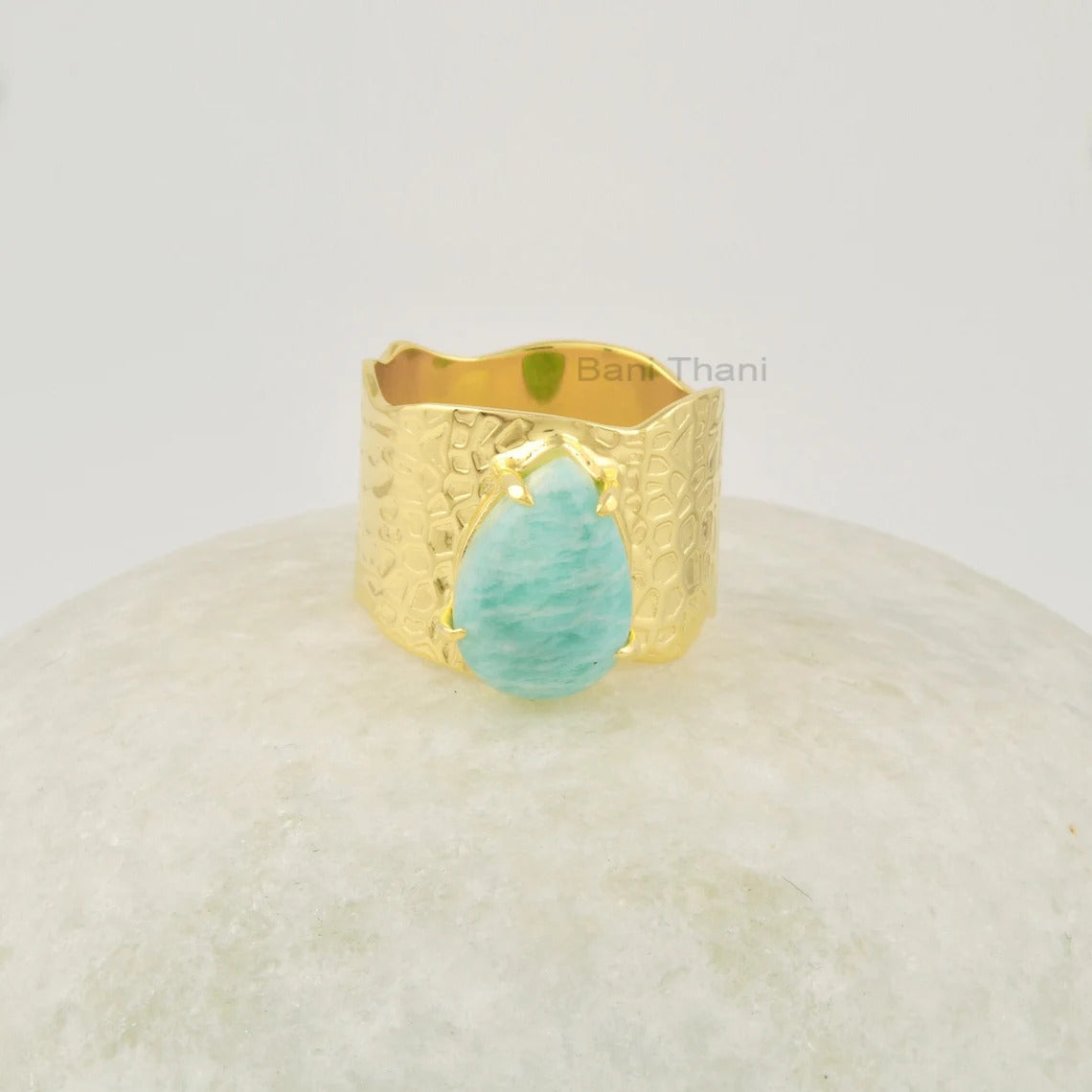 Natural Amazonite Ring - Sterling Silver Rings - 9x13mm Pear Gemstone Ring - Gold Plated Ring - Gifts for Her - Jewelry for Love - Gift Item