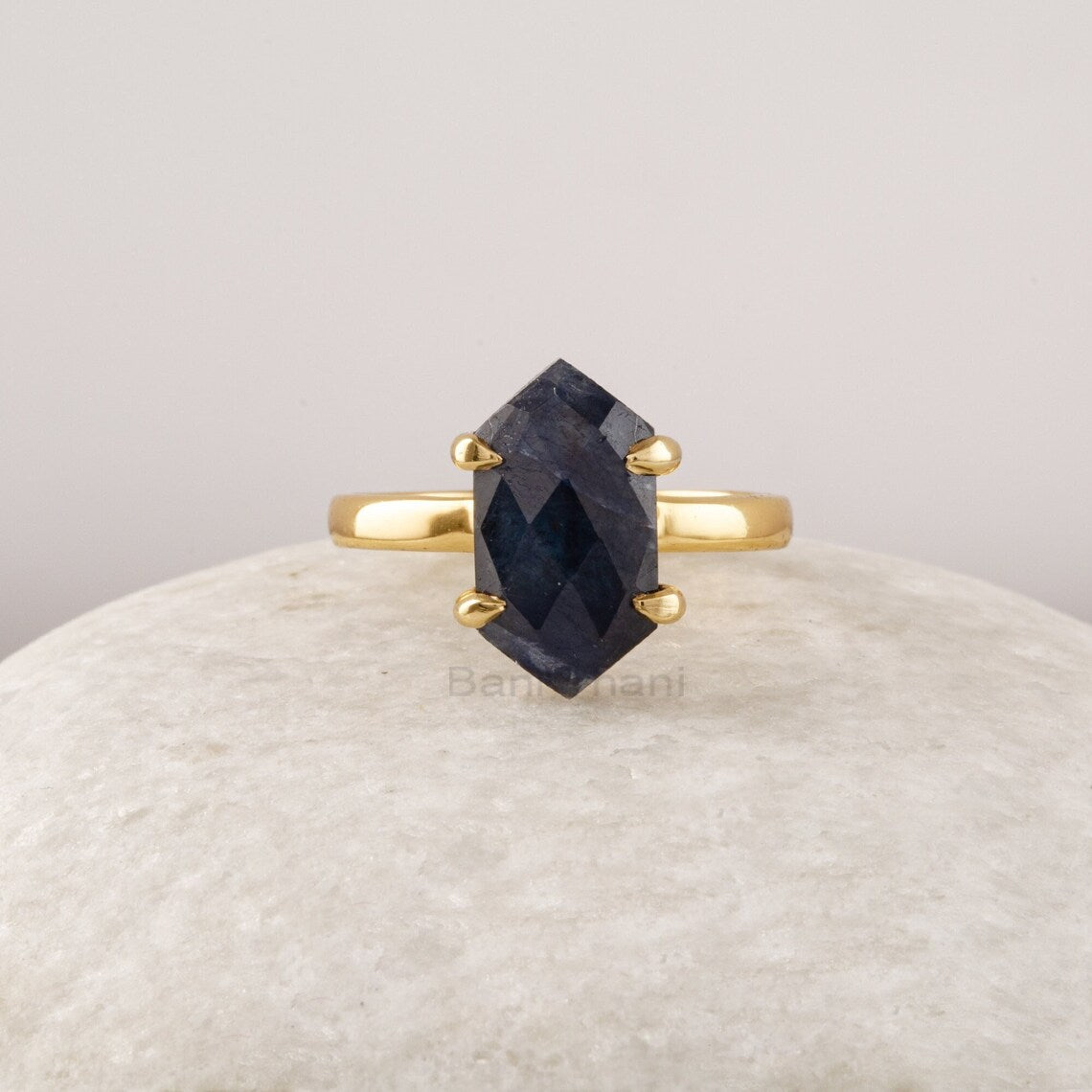 Natural Blue Sapphire Ring, Sterling Silver Ring, Hexagon Shape Blue Gemstone Ring, Birthstone Ring For Women, Delicate Prong Ring For Gifts