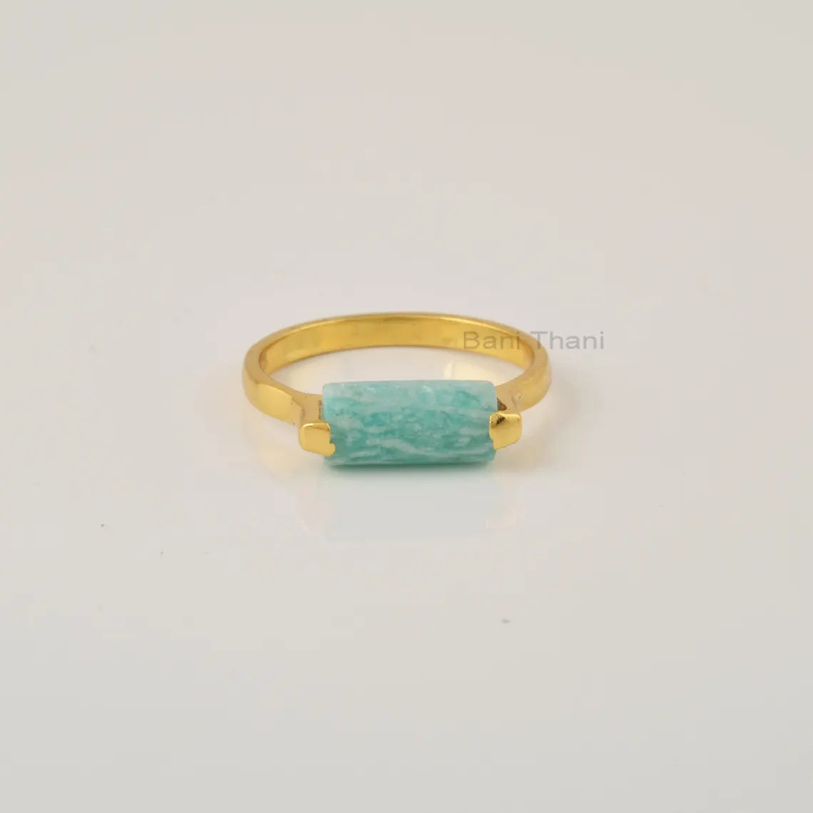 Natural Green Amazonite 5x11 mm Rectangle Shape Gemstone Ring, 18k Gold Plated Ring, Gemstone Silver Rings For Wife, Gift For Mother