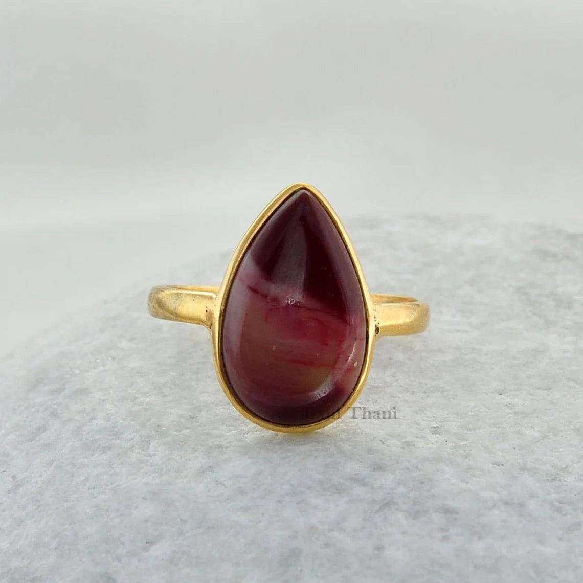 Mookaite 10x15mm Pear Gemstone Ring - 925 Sterling Silver Ring - Micron Gold Plated Ring for Mom - Handmade Ring - Birthday Gift - Boho Ring