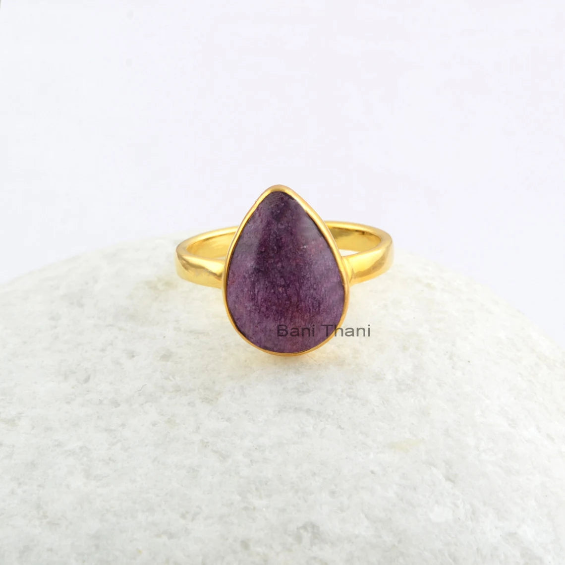 Natural Purpurite 10x14mm Pear Gemstone Ring, Micron Gold Plated 925 Sterling Silver Ring, Valentine's Day, Anniversary Gift, Delicate Ring