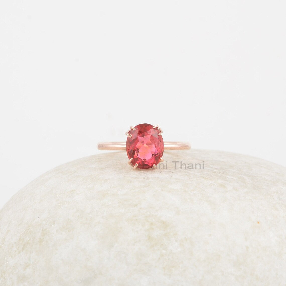 Padparadscha Sapphire Silver Ring - Rose Gold 925 Sterling Silver Ring for Women - Wedding Gift - 8x10mm Oval Gemstone Ring - Gift for Her