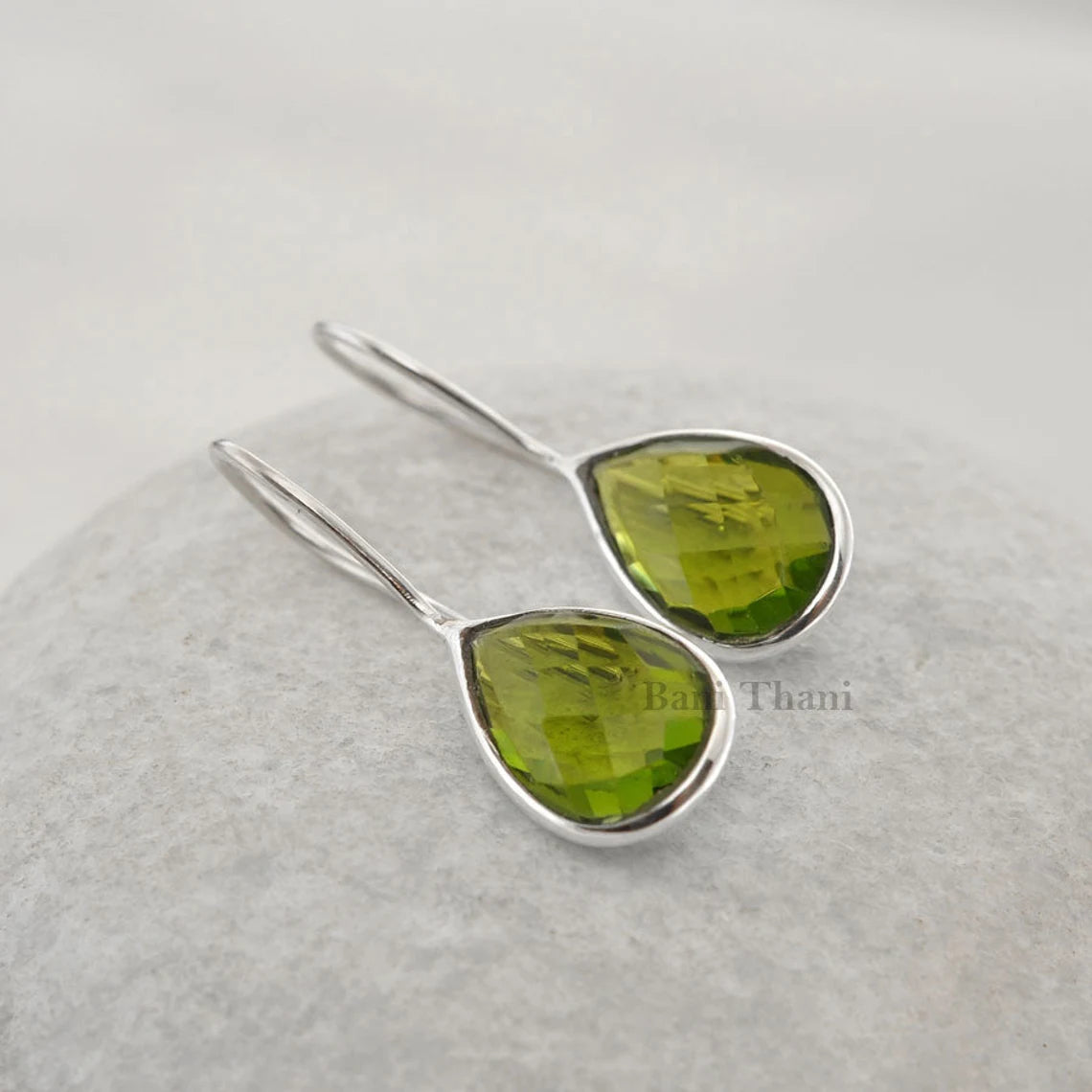 Peridot Quartz 10x15mm Pear Gemstone Earrings, 925 Sterling Silver Bezel Earrings, Drop Earrings, Christmas Gift Earrings, Delicate Earrings